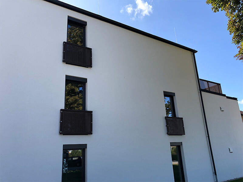Hiermer fertig, liefert und montiert für ein Mehrfamilienhaus in Wallersdorf Außengeländer, Innengeländer und franz. Balkone
